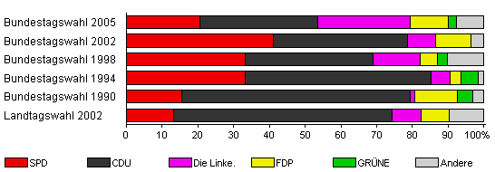 | Landtagswahl 2002 | 56,9 | 13,3 | 61,1 | 8,0 | 8,0 | - | 9,7 | |