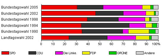 | SPD | CDU | Die Linke. | FDP | GRÜNE | Andere | |||