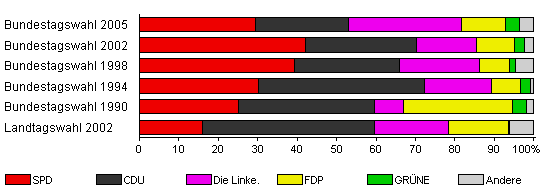 | Landtagswahl 2002 | 46,3 | 16,1 | 43,5 | 18,7 | 15,4 | 0,2 | 6,1 | |