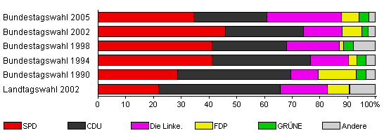 | SPD | CDU | Die Linke. | FDP | GRÜNE | Andere | |||
