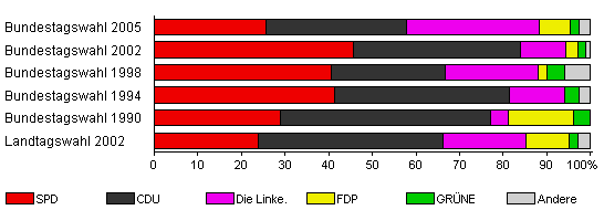 | Bundestagswahl 2005 | 70,1 | 25,7 | 32,1 | 30,5 | 7,0 | 2,1 | 2,7 | |
