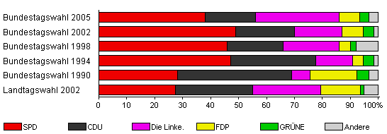 | SPD | CDU | Die Linke. | FDP | GRÜNE | Andere | |||
