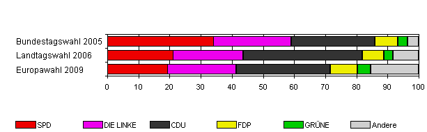 | Landtagswahl 2006 | 45,2 | 21,1 | 22,5 | 38,3 | 6,9 | 2,9 | 8,3 | |