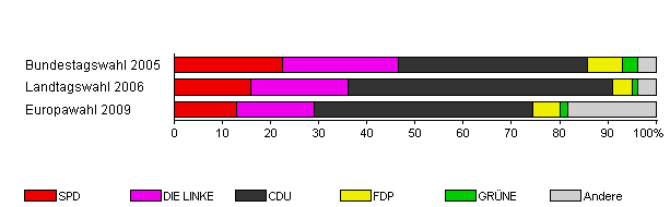 | Landtagswahl 2006 | 64,4 | 15,9 | 20,1 | 54,9 | 4,2 | 1,1 | 3,8 | |
