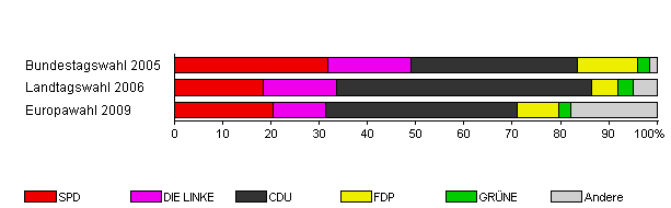 | Landtagswahl 2006 | 54,7 | 18,4 | 15,2 | 52,8 | 5,6 | 3,2 | 4,8 | |