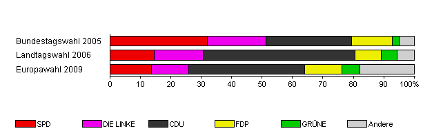 | Landtagswahl 2006 | 34,5 | 14,5 | 16,1 | 50,0 | 8,5 | 5,2 | 5,8 | |