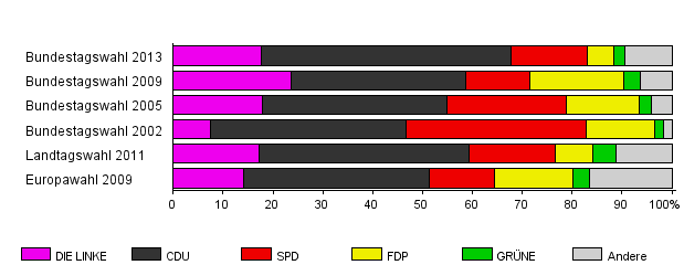 | DIE LINKE | CDU | SPD | FDP | GRÜNE | Andere | |||