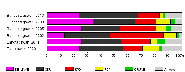 | DIE LINKE | CDU | SPD | FDP | GRÜNE | Andere | |||