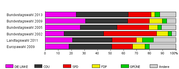 | DIE LINKE | CDU | SPD | FDP | GRÜNE | Andere | |||