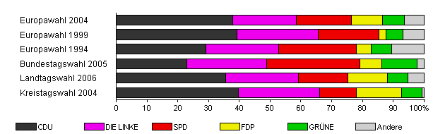 | Landtagswahl 2006 | 42,6 | 35,6 | 23,7 | 16,1 | 12,7 | 6,8 | 5,1 | |