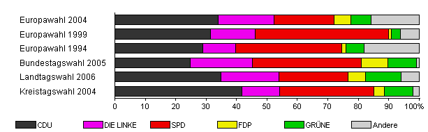 | Landtagswahl 2006 | 39,8 | 35,0 | 19,0 | 22,6 | 5,8 | 11,7 | 5,8 | |