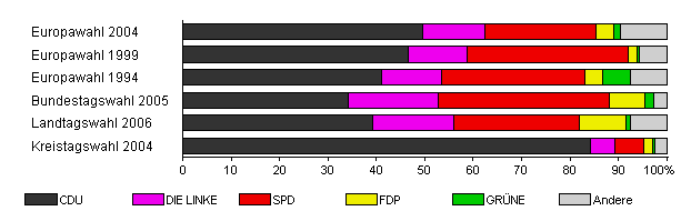 | Kreistagswahl 2004 | 70,4 | 84,3 | 5,0 | 5,9 | 2,0 | 0,4 | 2,5 | |