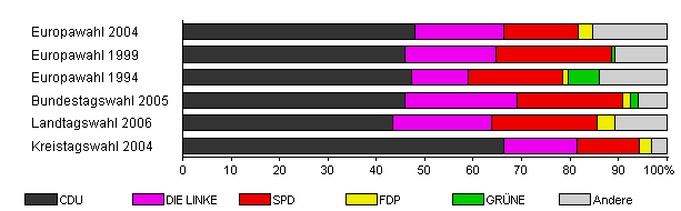 | Kreistagswahl 2004 | 54,6 | 66,3 | 15,3 | 12,8 | 2,5 | x | 3,1 | |