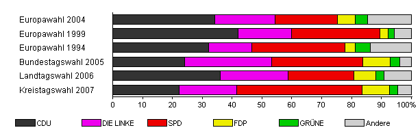 | Kreistagswahl 2007 | 32,2 | 22,3 | 19,2 | 42,1 | 9,2 | 2,7 | 4,5 | |