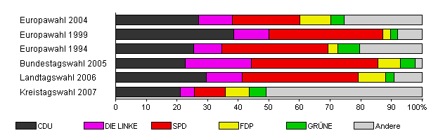 | Kreistagswahl 2007 | 40,6 | 21,1 | 4,6 | 10,2 | 7,7 | 5,6 | 50,8 | |