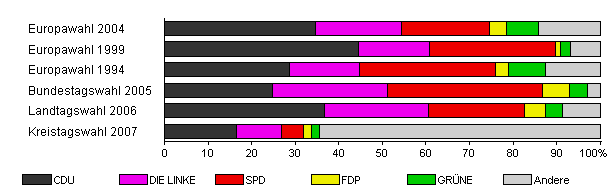 | Kreistagswahl 2007 | 41,3 | 16,5 | 10,3 | 5,1 | 1,8 | 1,8 | 64,5 | |