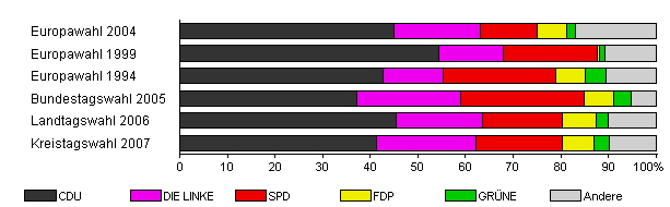| Kreistagswahl 2007 | 49,2 | 41,4 | 20,8 | 18,2 | 6,5 | 3,4 | 9,7 | |