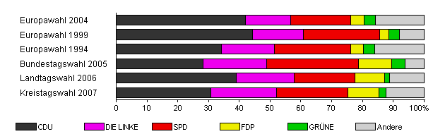 | Kreistagswahl 2007 | 33,2 | 30,7 | 21,5 | 23,0 | 10,1 | 2,5 | 12,2 | |