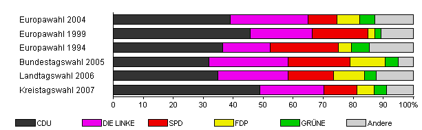 | Landtagswahl 2006 | 45,2 | 35,0 | 23,2 | 15,3 | 10,3 | 3,9 | 12,3 | |