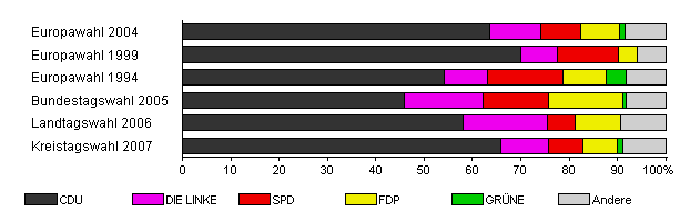 | Kreistagswahl 2007 | 54,2 | 65,9 | 9,8 | 7,2 | 7,2 | 1,1 | 8,7 | |