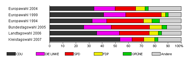 | Kreistagswahl 2007 | 43,3 | 53,4 | 9,3 | 8,9 | 8,2 | 2,7 | 17,6 | |