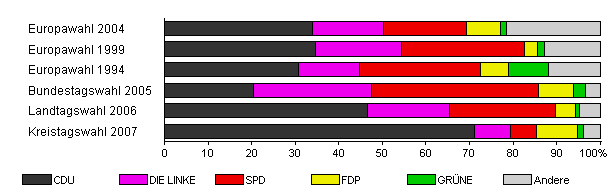 | Kreistagswahl 2007 | 43,9 | 71,1 | 8,3 | 6,1 | 9,2 | 1,5 | 3,9 | |