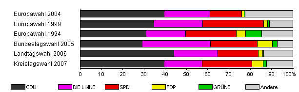 | Kreistagswahl 2007 | 50,9 | 39,4 | 18,1 | 23,3 | 5,3 | 1,7 | 12,2 | |