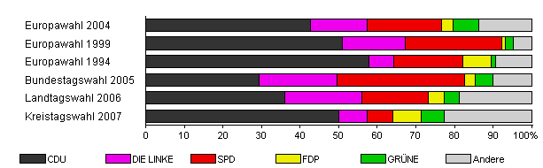 | Landtagswahl 2006 | 49,7 | 36,0 | 20,0 | 17,3 | 4,0 | 4,0 | 18,7 | |