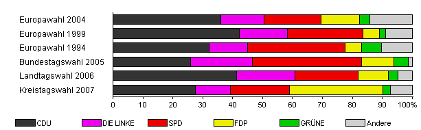 | Landtagswahl 2006 | 49,6 | 41,4 | 19,5 | 21,1 | 10,1 | 3,1 | 4,9 | |