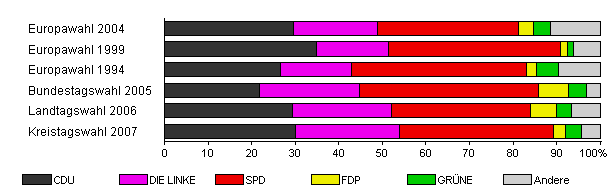 | Landtagswahl 2006 | 41,4 | 29,4 | 22,8 | 31,9 | 5,8 | 3,5 | 6,5 | |