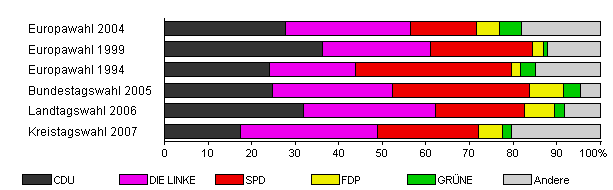 | Landtagswahl 2006 | 40,7 | 31,9 | 30,2 | 20,5 | 6,9 | 2,4 | 8,0 | |