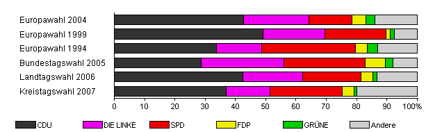 | Kreistagswahl 2007 | 44,1 | 36,9 | 14,5 | 23,9 | 3,8 | 1,0 | 19,8 | |