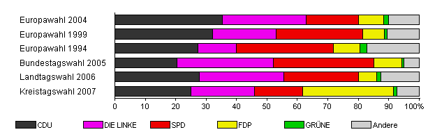 | Kreistagswahl 2007 | 32,3 | 25,0 | 20,9 | 15,8 | 29,9 | 1,2 | 7,3 | |