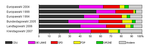 | Kreistagswahl 2007 | 34,9 | 29,0 | 21,4 | 17,1 | 9,3 | 1,8 | 21,4 | |