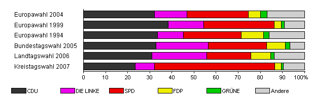 | Kreistagswahl 2007 | 47,6 | 23,3 | 8,8 | 54,5 | 2,9 | 1,0 | 9,3 | |