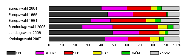 | Landtagswahl 2006 | 49,9 | 49,0 | 20,0 | 15,8 | 4,2 | 2,5 | 8,4 | |