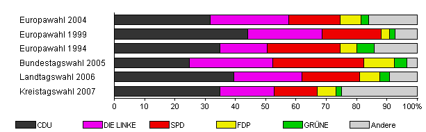 | Kreistagswahl 2007 | 32,3 | 34,9 | 17,8 | 14,4 | 6,2 | 1,8 | 24,8 | |