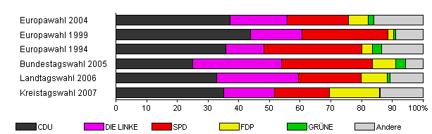 | Kreistagswahl 2007 | 25,6 | 35,2 | 16,4 | 17,9 | 16,3 | 0,2 | 13,9 | |