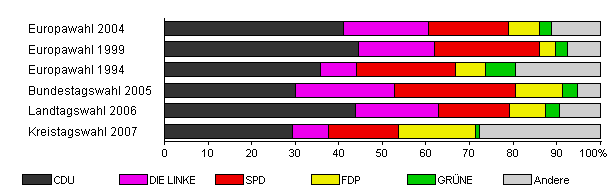| Kreistagswahl 2007 | 34,3 | 29,3 | 8,3 | 16,1 | 17,7 | 0,9 | 27,6 | |