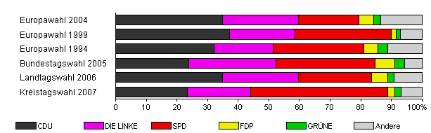 | Kreistagswahl 2007 | 33,6 | 23,4 | 20,6 | 44,9 | 2,2 | 2,0 | 6,9 | |