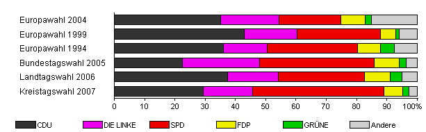| Kreistagswahl 2007 | 40,8 | 29,4 | 16,3 | 43,4 | 6,2 | 2,0 | 2,6 | |
