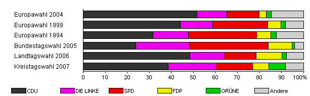 | Kreistagswahl 2007 | 45,1 | 38,6 | 21,7 | 16,5 | 7,5 | 7,5 | 8,2 | |