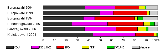 | Landtagswahl 2006 | 33,0 | 36,0 | 27,9 | 18,4 | 7,4 | 2,2 | 8,1 | |