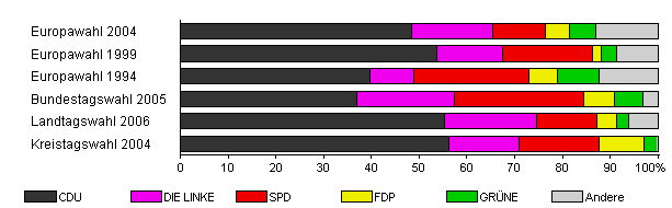 | Landtagswahl 2006 | 52,9 | 55,3 | 19,3 | 12,7 | 4,0 | 2,7 | 6,0 | |