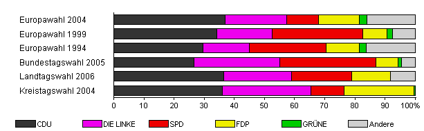 | Landtagswahl 2006 | 42,7 | 36,6 | 22,4 | 19,9 | 13,0 | - | 8,1 | |