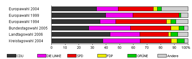 | Kreistagswahl 2004 | 50,6 | 37,7 | 27,3 | 22,6 | 4,5 | 5,3 | 2,6 | |