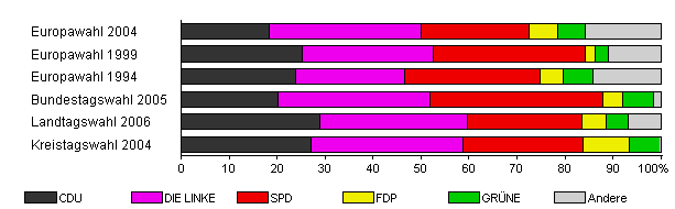 | Kreistagswahl 2004 | 49,6 | 27,1 | 31,6 | 25,2 | 9,5 | 6,5 | x | |