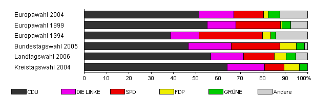 | Kreistagswahl 2004 | 46,3 | 64,1 | 16,7 | 8,8 | 6,7 | 3,6 | x | |