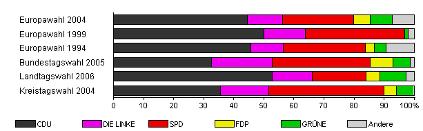 | Kreistagswahl 2004 | 44,2 | 35,6 | 16,1 | 38,2 | 4,3 | 5,7 | x | |
