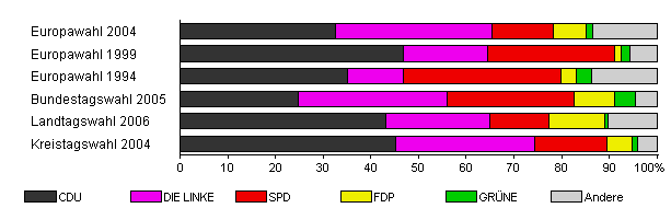 | Kreistagswahl 2004 | 51,8 | 45,2 | 29,1 | 15,3 | 5,3 | 1,1 | 4,0 | |